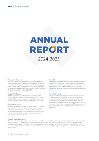 needs of all stakeholders of Tata Consulting Engineers (TCE), including material to TCE’s stakeholders. It offers insights into our businesses,