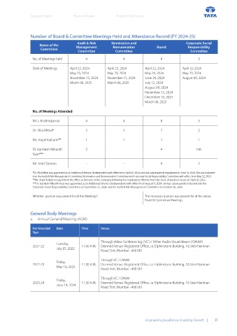 Number of Board & Committee Meetings Held and Attendance Record (FY 2024-25)