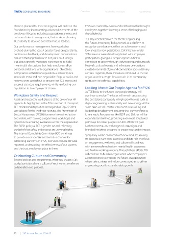 addressing concerns. In FY25, no POSH complaints were on engagement, wellbeing and culture will continue,