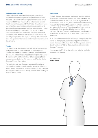 pride that systems and processes led to no governance issues in In all, it has been a momentous year for your Company. My best