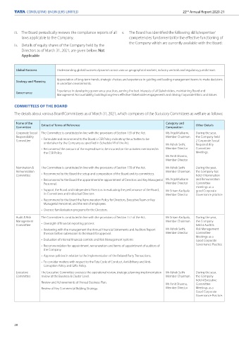 iii. The Board periodically reviews the compliance reports of all v. The Board has identified the following skills/expertise/
