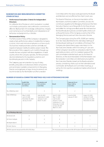 to attract, retain and motivate employees to achieve results. the Board and meetings of committees of the Board. The