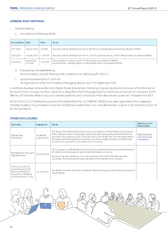 2018-2019 July 08, 2019 11.30 A.M Tata Sons Limited. Meeting Room No 301, 3rd Floor, Bombay House, 24 Homi Mody Street, Fort, Mumbai 400001