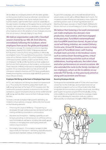 engaged through these times. Across multiple forums, our initiatives included offering our employees a series of physical