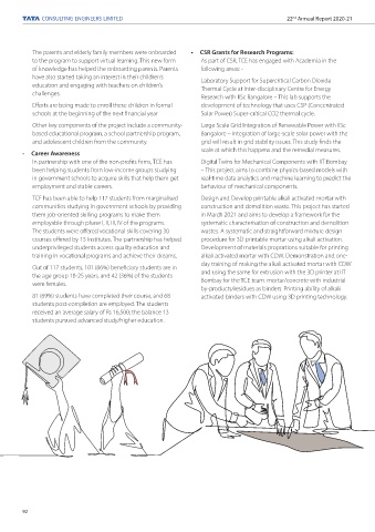 The parents and elderly family members were onboarded • CSR Grants for Research Programs: